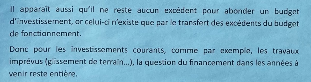 On ne remerciera jamais assez la municipalité pour les économies dans tout ce qui ne concerne pas le presbytère en particulier et les bâtiments communaux en général.